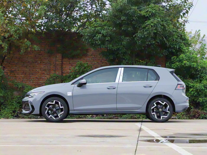 再来看车身侧面部分,车身侧面延续高尔夫经典的短前后悬设计,长宽高分别为 4282(4289)/1788/1479 毫米,轴距 2631 毫米,紧凑尺寸使其在城市拥堵路段与狭窄车位中穿梭自如。车顶线条从 B 柱平缓过渡至车尾,配合隐藏式 C 柱设计,营造出悬浮车顶视觉效果,既保证风阻优化,又维持了两厢车的灵动气质。车身侧面的内凹腰线从前翼子板延伸至尾灯,搭配黑色侧裙,让紧凑车身更显修长。全车采用四门一键式防夹电动车窗与电动加热后视镜,中高配还增加外后视镜自动折叠与迎宾照地灯,细节配置贴合日常使用场景。